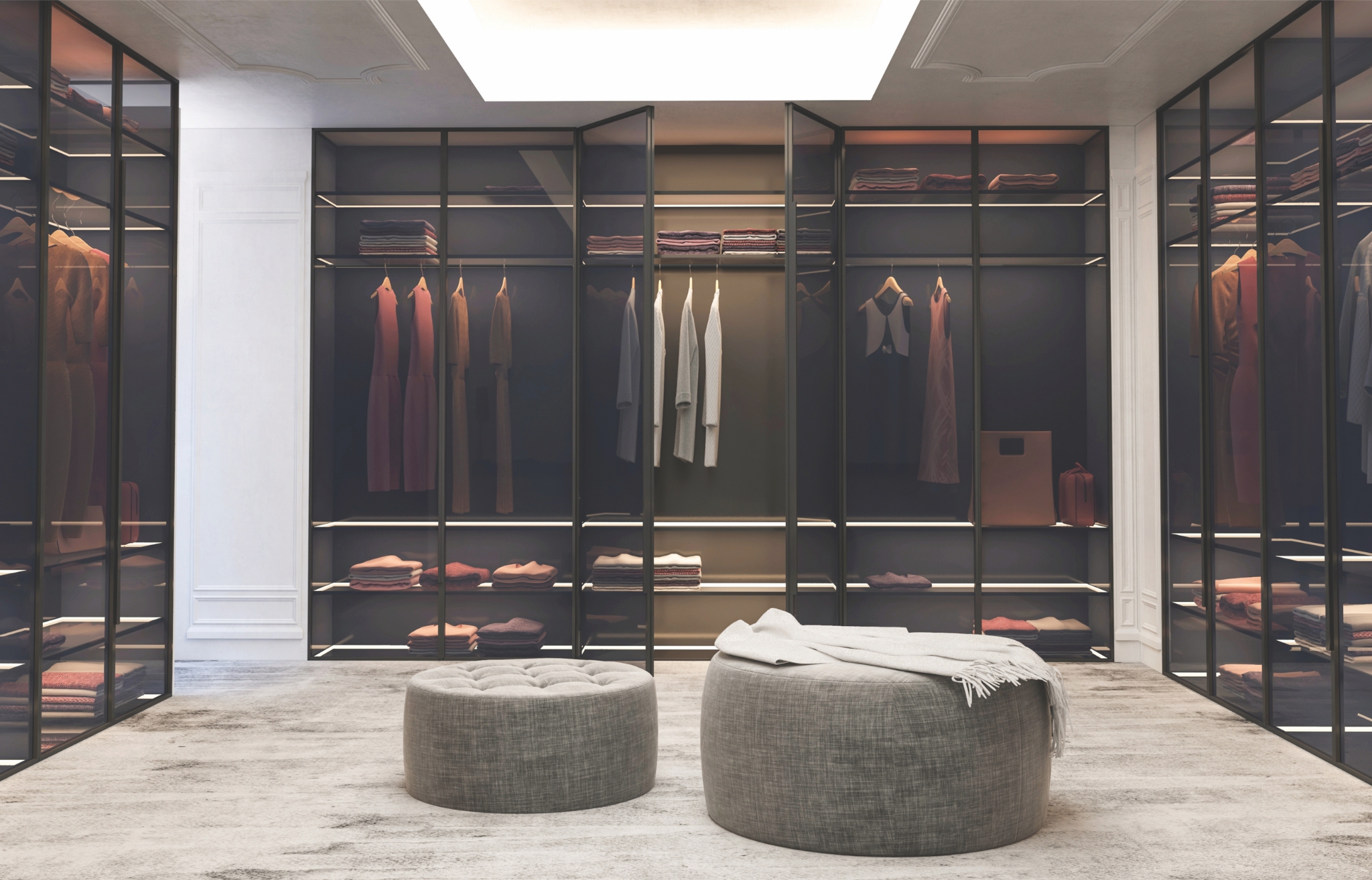 Aarna Armari is a collection of minimal yet modernized aluminum wardrobes designed to highlight a bedroom's uniqueness. These beautiful wardrobes feature aluminum frames that circumference either clear glass or a wooden carcass. With aesthetically placed Italian concealed hinges and soft-closing doors, the system extenuates overall lavishness while providing a comprehensive experience through integrated LED lighting.