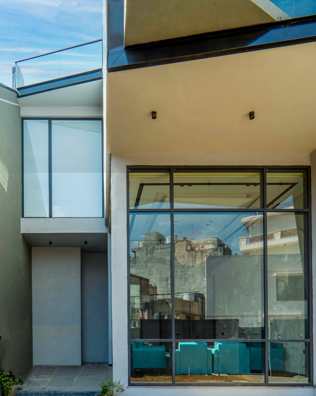 Representing a bold and modern architectural statement, this private residence features sleek windows, a charcoal railing, and a futuristic appearance that make it a standout property in the neighborhood. The sleek and slim line windows showcase a minimalist and contemporary design approach, creating a sense of openness and modernity in the home. Additionally, the striking matte charcoal railing adds a bold and distinctive touch. The combination of these sleek windows and the charcoal railing contributes significantly to the home's futuristic appearance, setting it apart from other houses in the area and reflecting the innovative vision of the architect. Overall, this project is a remarkable achievement with innovative and visually stunning aesthetics, credited with bringing a new dimension to the community.