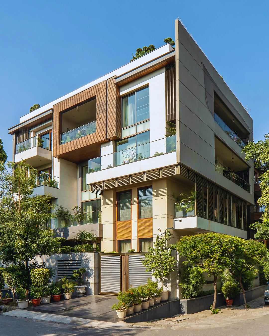 The private residence in Kalindi Kolony, New Delhi, is an impressive property that spans 900 square yards with over 50,000 square feet of coverage, designed to accommodate a joint family. Crafted by Eternity Architects, the residence is described as a "multifaceted beauty," boasting spacious and well-designed living spaces suited for multiple generations. The architectural design incorporates Minimo slim windows, suggesting a focus on modern design with sleek and minimalistic window profiles that allow ample natural light while maintaining an elegant aesthetic. Additionally, ArtRail is mentioned as the railing system which adds an artistic and stylish touch, while durable interior aluminum partitions are trusted upon to create versatile functional spaces. Overall, this residence represents a harmonious blend of functionality and aesthetics, catering to the needs of a joint family to create a luxurious and well-designed living environment.