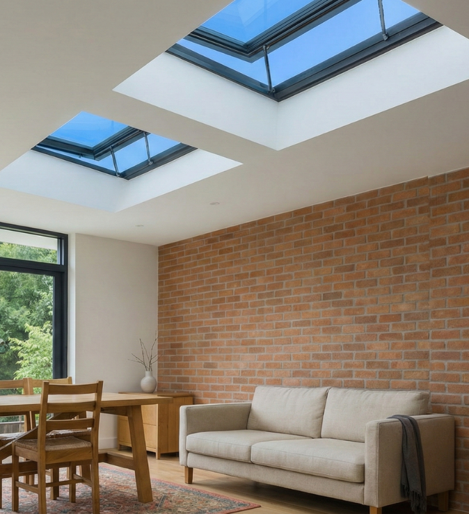 Our Ventilating Skylight is designed to transform your space by delivering both natural daylight and fresh airflow. It features a robust opening mechanism available in both manual and motorized options, allowing for "ventilation on demand." Fully weather-sealed when closed, it ensures that you can enjoy the breeze without compromising on thermal comfort or leak protection.